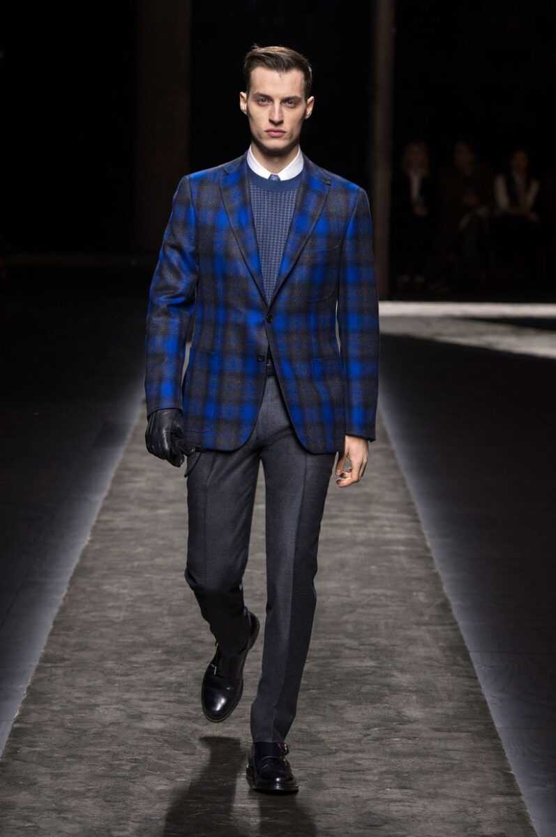 Italian slim fit jackets are a real legend in the fashion world, as their design is perfectly verified by the masters, who have been working on them for some generations. The Etro Fashion House (by the way it is a family business too) each season presents to the lovers of “Made in Italy” two-button fitted-cut jackets, and certainly with a print. Jacquard pattern resembling camouflage makes this design an excellent choice for evening look. The Etro family is also very proud of the textiles they use. A good combination of wool, cotton and viscose make this at first glimpse light design, a decent element of winter wardrobe.