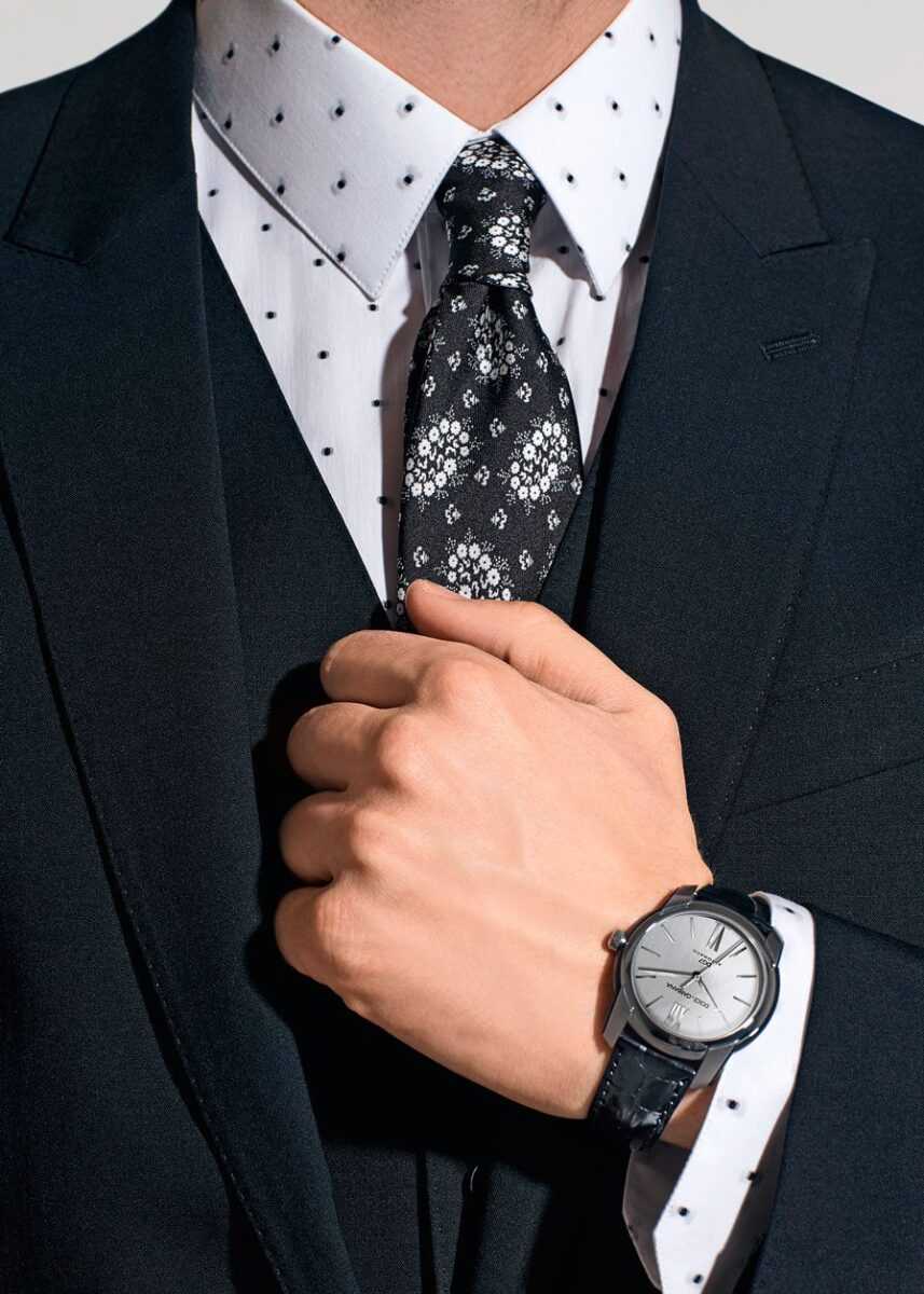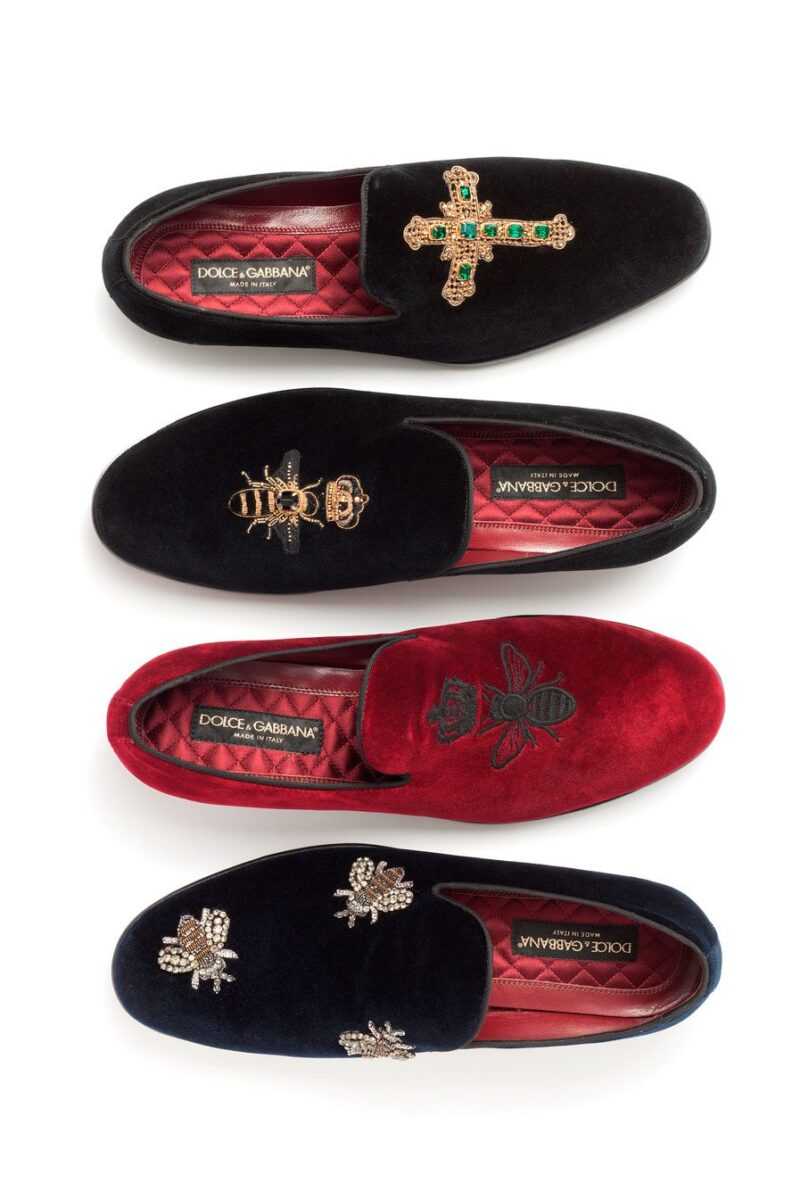 The two-button fitted-cut jacket of Domenico Dolce and Stefano Gabbana brand is impossible to mix up with others: stylish peaked lapels have become an identification mark of Sicilian designers. Wearing the jackets with such lapels, a footballer Lionel Messi received his “Golden Ball” award, and Matthew McConaughey was posing for paparazzi on the red carpets of the most posh Hollywood gala-dinners. A snow-white shirt, a bow tie, trousers with satin side stripes and high-gloss exotic leather shoes are the best companions of the sumptuous Dolce & Gabbana jacket.