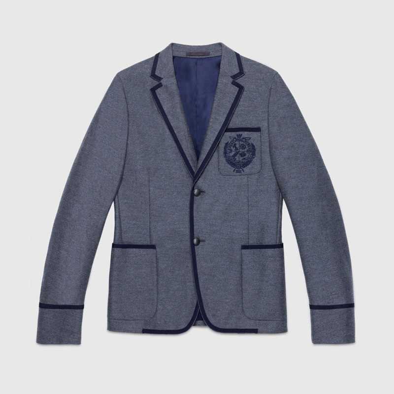 A new designer of Florentine Gucci brand Alessandro Michele is well aware of the fact that it is the jacket that shows the good taste, the ambitions and the status of its owner. Therefore despite big changes in brand stylistics, the designer has made the jacket a key item of his collection. Fashion critics have been already discussing Michele`s bold decision to significantly shorten the sleeves of iconic Gucci fitted-cut jackets. It is recommended to wear the jacket without a tie, with light-colored pants, white shirt and trendy shoes as at the Milan Fashion Week show.