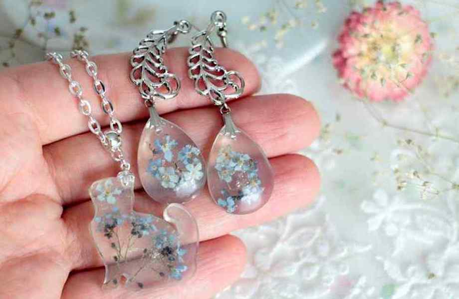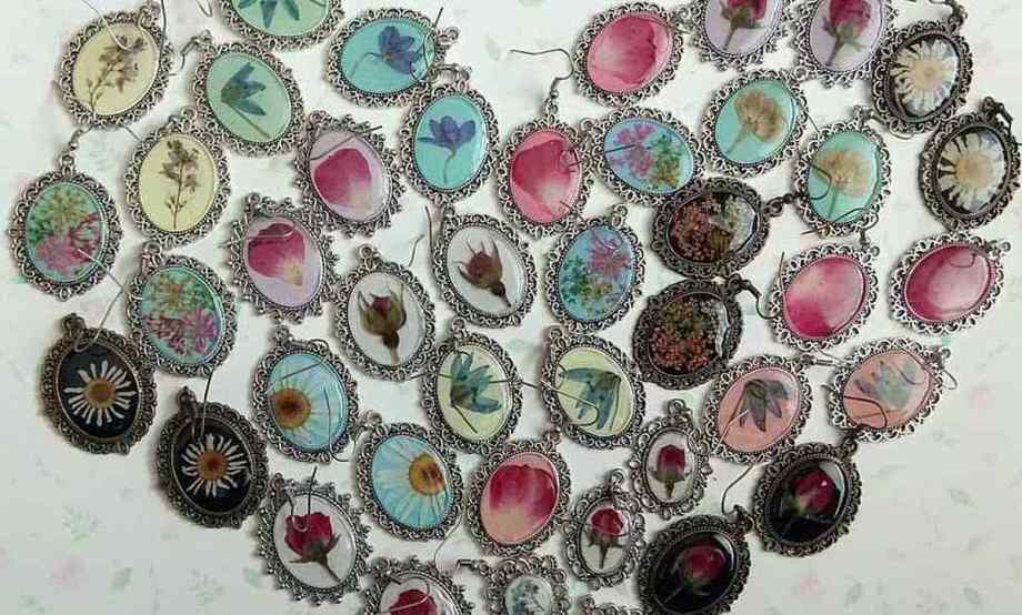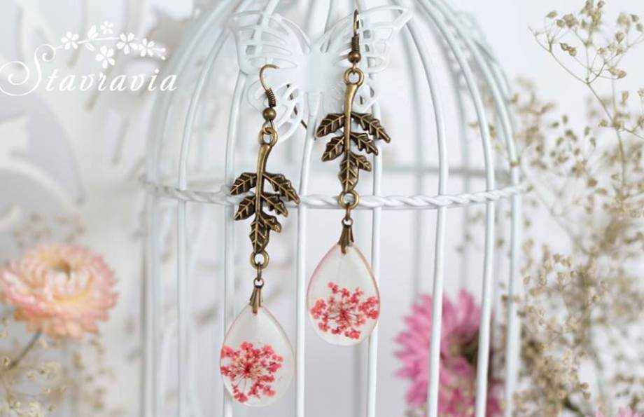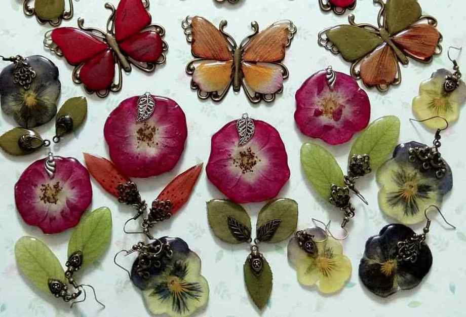 Цікавий приклад – вироби Вікторії Вижги, яка їх виготовляє з рослин, що сама вирощує, збирає в полі, в лісі. Висушує рослини, викладає в композицію, покриває ювелірною епоксидною смолою, декорує оправи. Таким чином, рослини назавжди зберігаються у виробі.