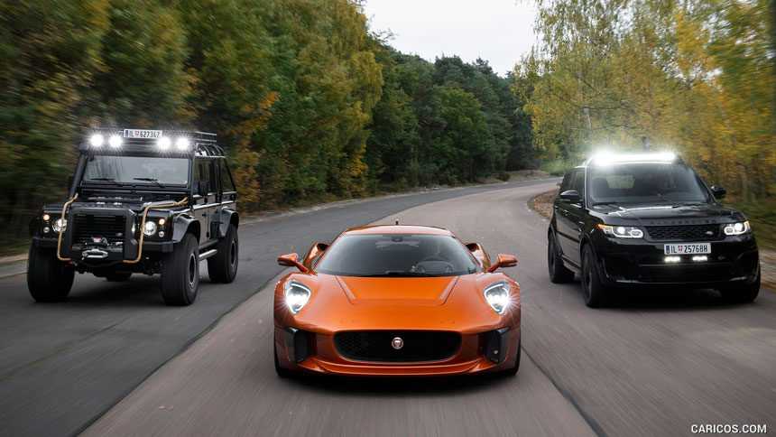 Помимо уникального концепта Jaguar C-X75, в 24-м эпизоде бондианы задействованы и серийные автомобили этой британской марки. Так, в одном из эпизодов яркая и динамичная погоня в австрийских Альпах происходит на Range Rover Sport SVR и парочке Land Rover Defender, которые были специально разработаны для очередной серии киноэпопеи и серьезно подготовлены для бездорожья.