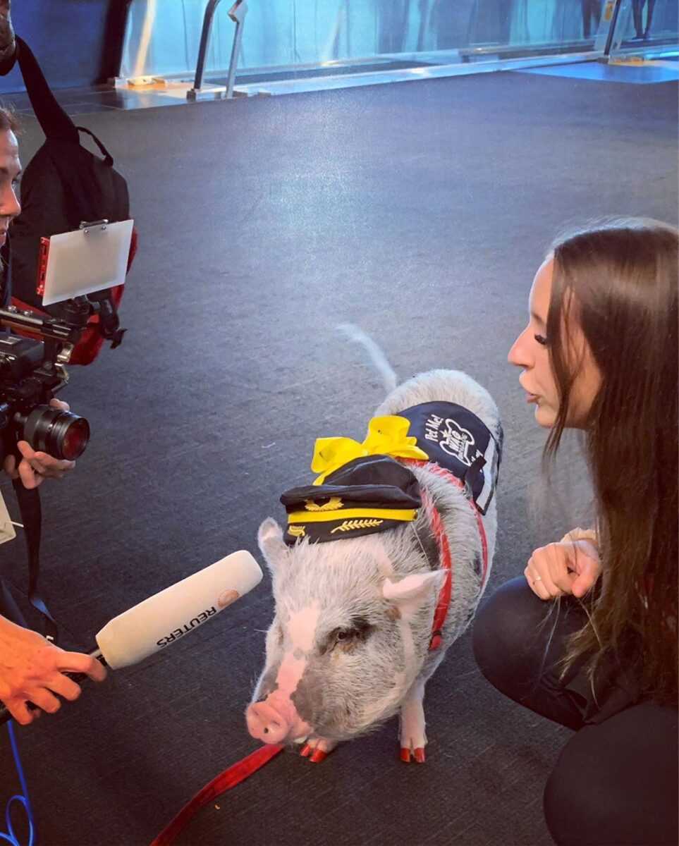 Свиня вітає пасажирів, фотографується з ними, а ще грає на фортепіано. Єдине, що нервує тварину, – це коли хтось наближається до неї ззаду.
