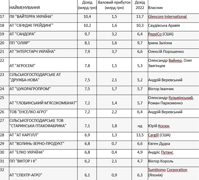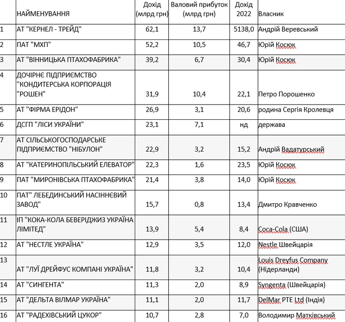 Своєю чергою, AgroPortal обрав серед лідерів України компанії, які займаються виробництвом та трейдингом сільськогосподарської продукції. Сукупний дохід цих підприємств за минулий рік склав майже 513 млрд грн.