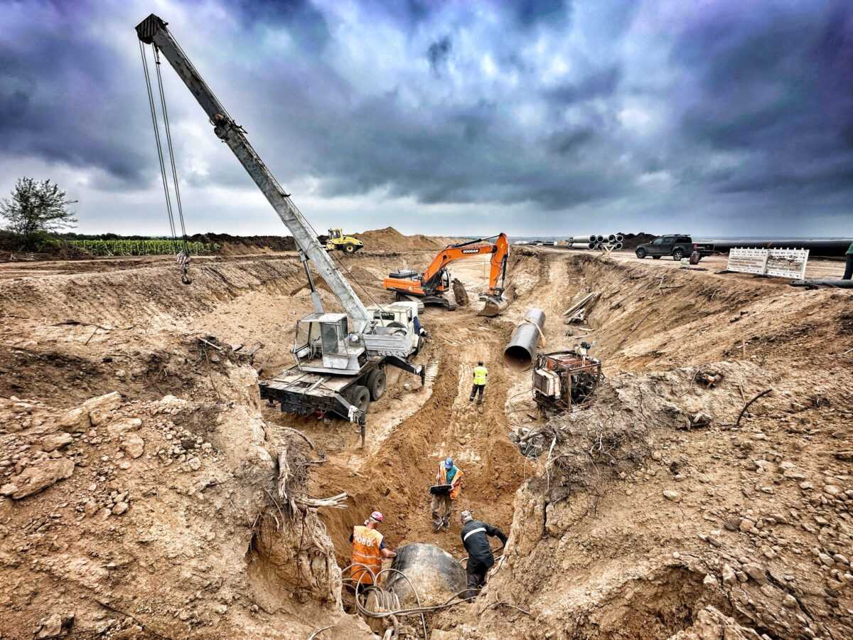 Нині майже на 100% завершено всі роботи з очищення існуючих каналів. Земельні роботи з укладання траншеї на стадії завершення – 88%. В Україну вже доставлено третину всієї необхідної труби, решта – в дорозі, і майже 15% труби вже змонтовано.