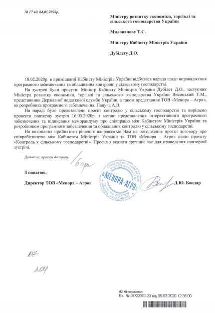 У проєкті договору між “Менора-Агро” і КМУ особливо наголошується, що компанія-розробник є ексклюзивним партнером і здійснює сервісне обслуговування всіх реєстраторів в країні без проведення конкурсу з визначення приватного партнера.
