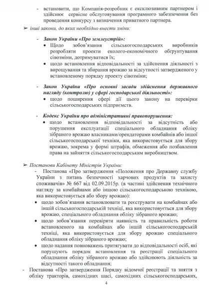 Програмне забезпечення буде реєструвати кількість зібраного кожним комбайном врожаю і площу земель, які реально перебувають в обробці, що дасть можливість потім зіставити ці дані із заявленими обсягами зерна і сплачених податків.