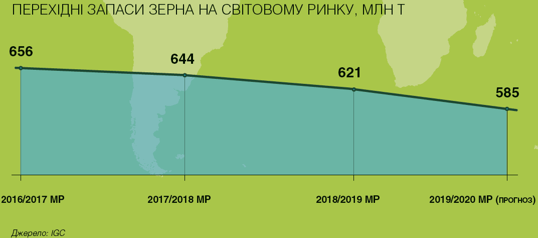Це абсолютний мінімум останніх років. Зазначимо, що темпи використання резервів щорічно прискорюються. У порівнянні з позаминулим роком обсяги запасів скоротяться втричі. В першу чергу йдеться про постійне зниження світових резервів кукурудзи. Прогнозується, що у поточному сезоні вони знизяться ще на 50 млн т. завдяки Китаю та США. Натомість перехідні запаси інших видів зерна збільшуватимуться. Можна відзначити зростання по пшениці та ячменю.