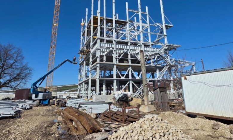 Наразі на об’єкті триває монтаж виробничого корпусу та підготовка до встановлення обладнання.