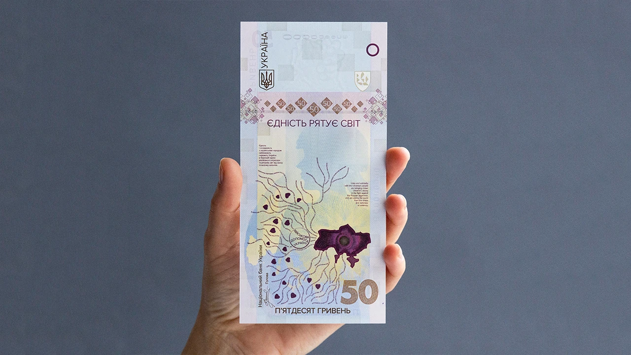 Національний банк України з 23 лютого 2024 року вводить в обіг нову пам’ятну банкноту “Єдність рятує світ”.