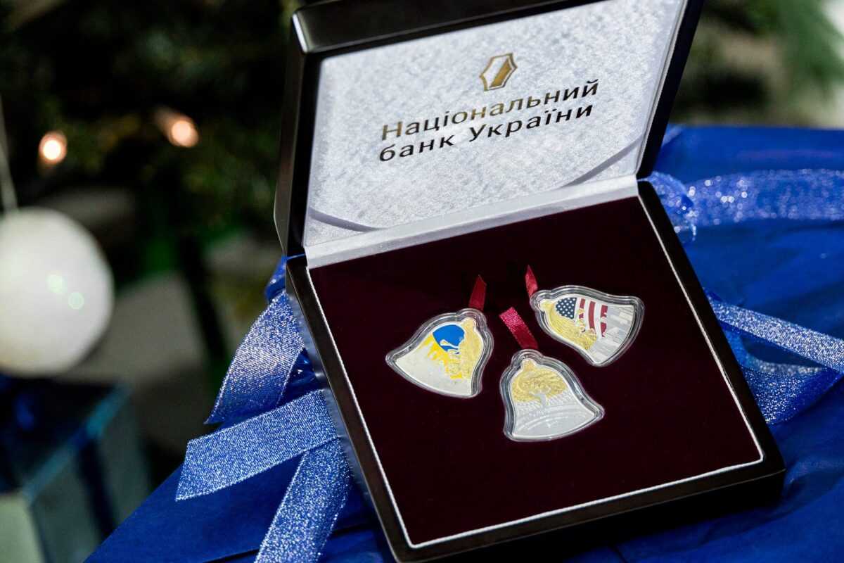 Голова Національного банку України Андрій Пишний спільно із заступником Голови Місії США в Україні Робертом Нідемом презентували набір пам’ятних монет “Щедрик – колядка дзвонів”.