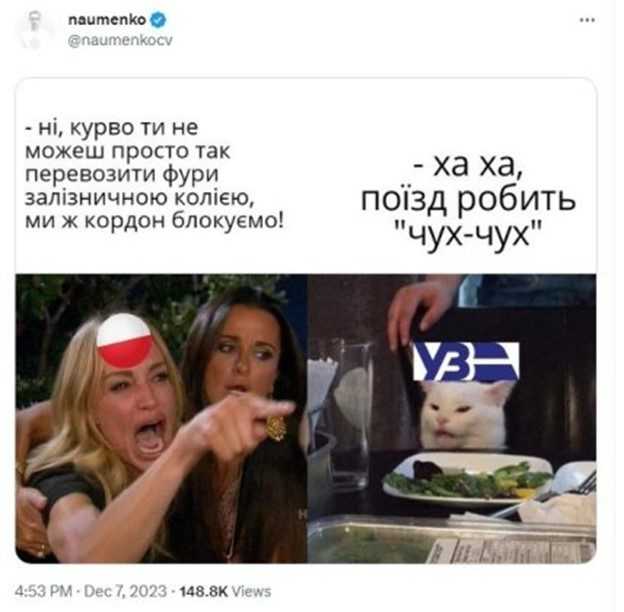 “Укрзалізниця” на більшості з них представлена як супергерой. Обігрується також обурення польської сторони.