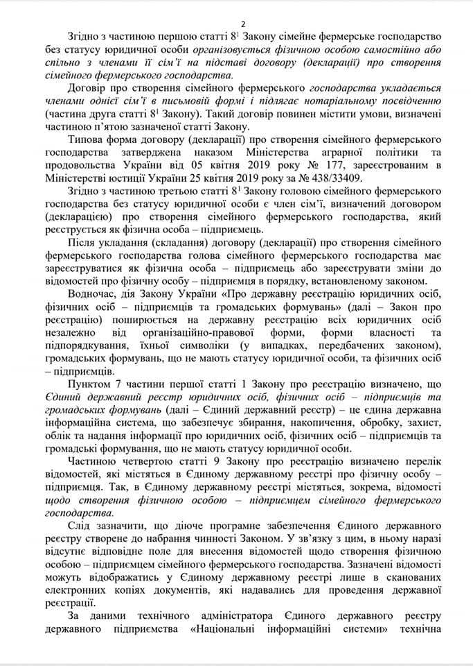 Відкрити легальний родинний агробізнес в Україні тепер буде простіше. Це можна зробити «шляхом створення фізичною особою – підприємцем сімейного фермерського господарства на підставі договору (декларації) про створення сімейного фермерського господарства і відображення про це відомостей в Єдиному державному реєстрі юридичних осіб, фізичних осіб-підприємців та громадських формувань», – інформує заступник міністра.
