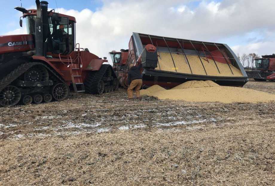 «Наче жнива-19 вже й перестали бути достатньо складними, проте в цей час на полях Північної Дакоти з’являються порожнини. Ця соя розсипалася вчора за 0,5 милі від полів, які ще чекають на збирання врожаю. Машину та боби сьогодні врятували. Будьте в безпеці там усі!» – пише Карен Браун.