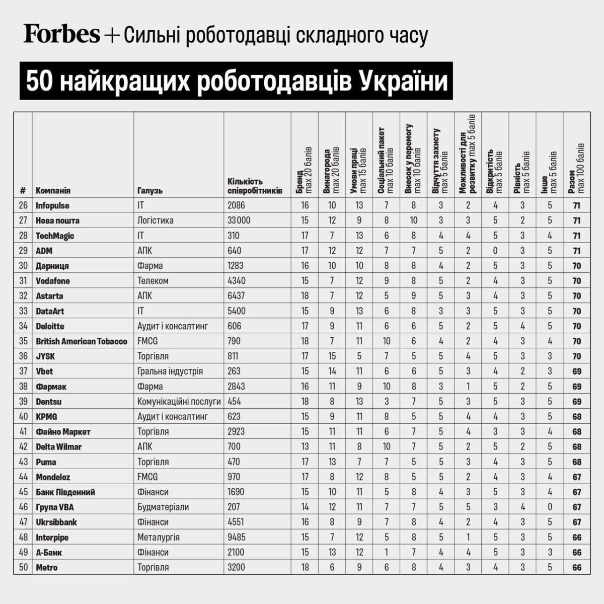 Forbes Ukraine спільно з онлайн‐платформою з пошуку роботи Rоbota.ua визначили найкращих роботодавців країни у 2024 році. Це вже четверте наше дослідження місць роботи, друге за час великої війни. І воно стало наймасштабнішим за всю історію цього проєкту.