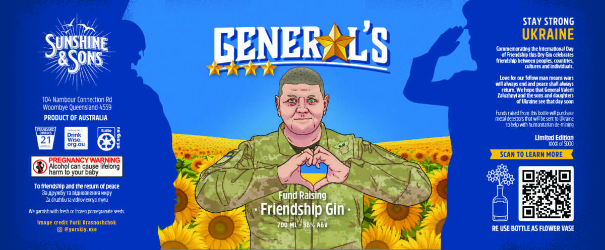 “На честь Міжнародного дня дружби цей сухий джин відзначає дружбу між народами, країнами, культурами та окремими людьми. Любов до наших ближніх означає, що війни завжди закінчаться, а мир завжди повернеться. Сподіваємося, що генерал Валерій Залужний та сини й доньки України незабаром побачать цей день”, – йдеться у повідомленні виробника.