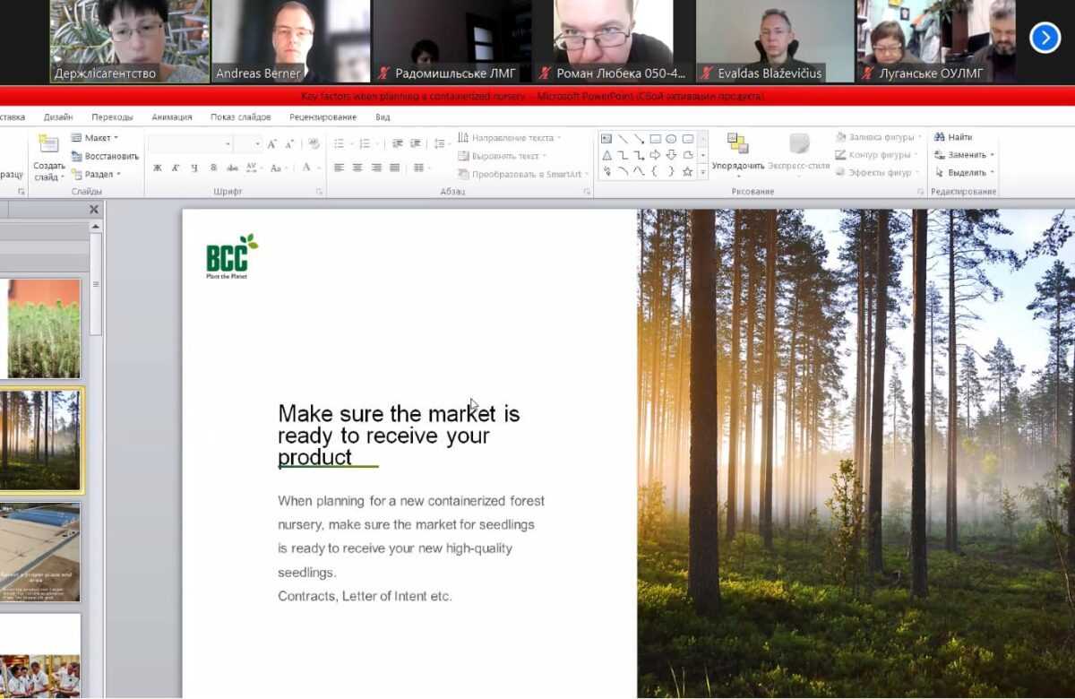 Зауважується, що шведські колеги поділилися власним досвідом створення лісових розсадників для вирощування садивного матеріалу із ЗКС (закритою кореневою системою – ред.). Окрім цього, було презентовано переваги зазначеного методу, представлено різні види та системи контейнерного вирощування.