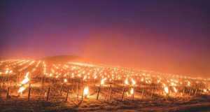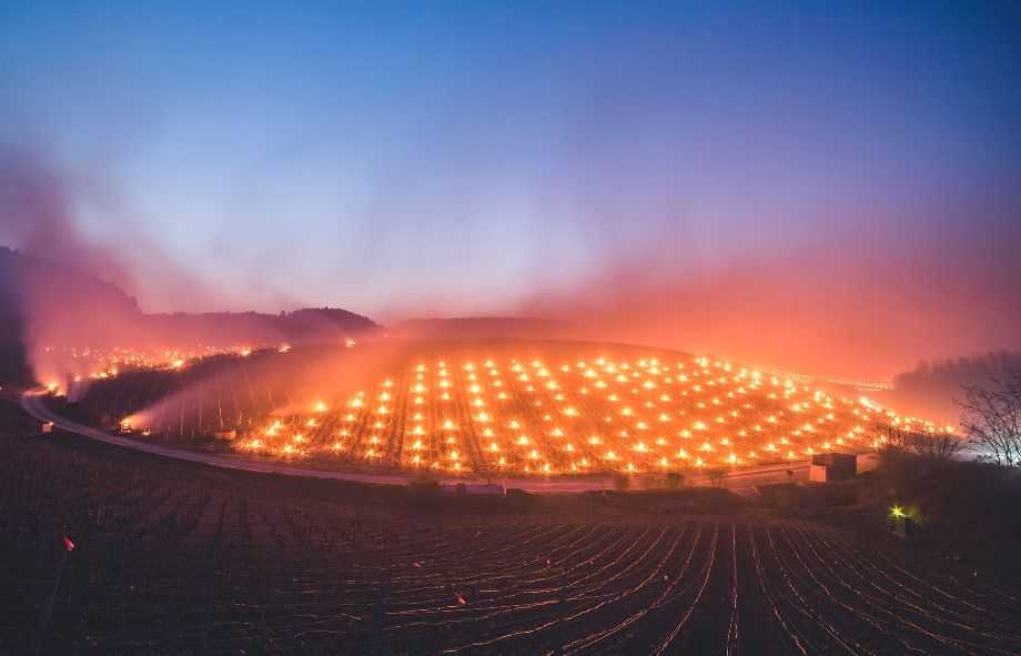 Екстремальні погодні умови в Європі змусили французьких виноградарів нести нічну варту на своїх плантаціях. Ресурс публікує вражаючі фото, зроблені в ніч з 13 на 14 квітня в різних куточках Франції, зокрема в Арбуа, департамент Жура на сході країни.