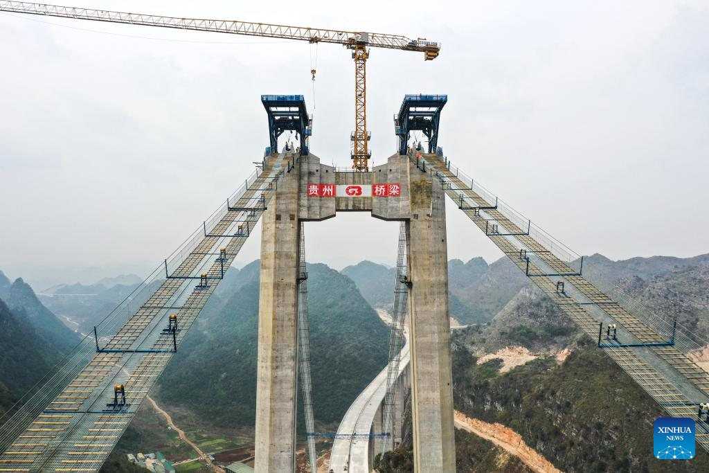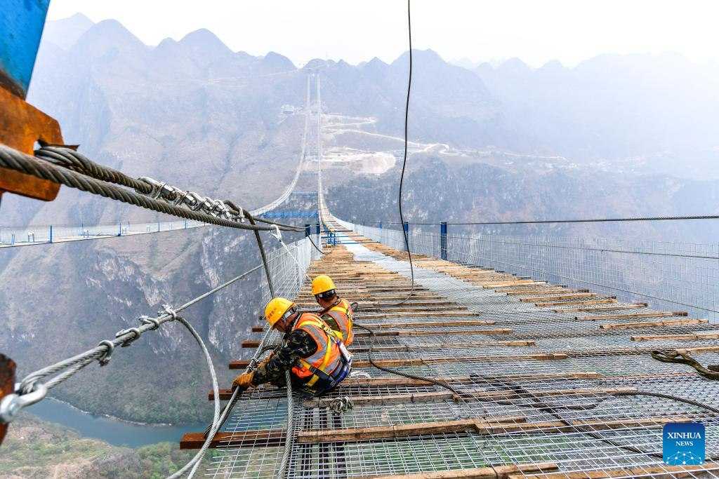 У китайській провінції Гуйчжоу триває будівництво автомобільного мосту, що стане найвищою подібною спорудою у світі, пише ЦТС з посиланням на Сіньхуа.