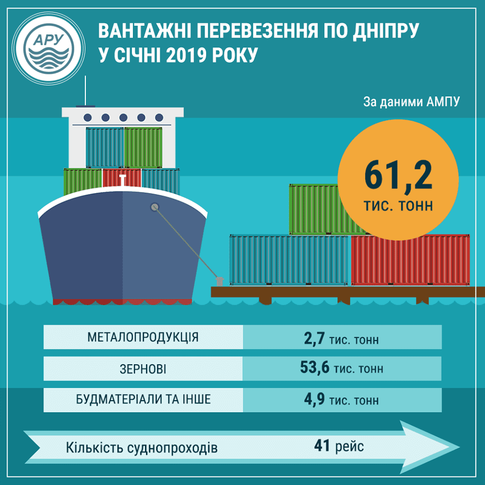 В Асоціації відзначають: порівняно з літніми місяцями об’єми перевезень не такі значні, однак для січня – це рекорд. Торік у цей період по Дніпру вантажі взагалі не перевозили.