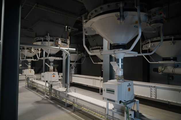 З металевих силосів пшениця потрапляє безпосередньо у млин. Як пояснив технолог, борошномельний комплекс поділений на три секції. У першій секції знаходяться місткості для зберігання непідготовленого зерна, — саме сюди воно потрапляє із зернових силосів. Тут же є місткості для побічних продуктів виробництва, — висівок та зернових відходів.
