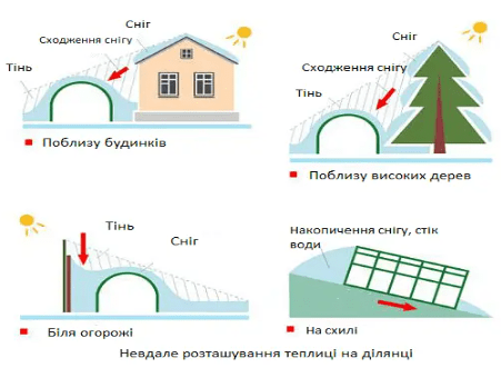 - Розташування теплиці по сторонах світу