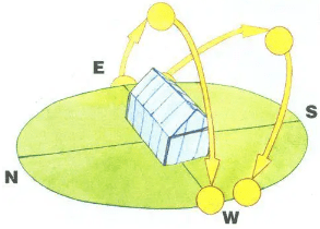 Щоб сонце якомога довше і ефективніше висвітлювало вашу теплицю, треба встановити її довгу сторону у напрямку із заходу на схід. Таке розташування теплиці по сторонах світу найбільш оптимально. Рослини отримуватимуть сонячну енергію протягом всього дня. В іншому випадку, Тінь від торцевої (рівної) сторони буде падати всередину теплиці на рослини, цим самим перешкоджаючи їхньому освітленню.