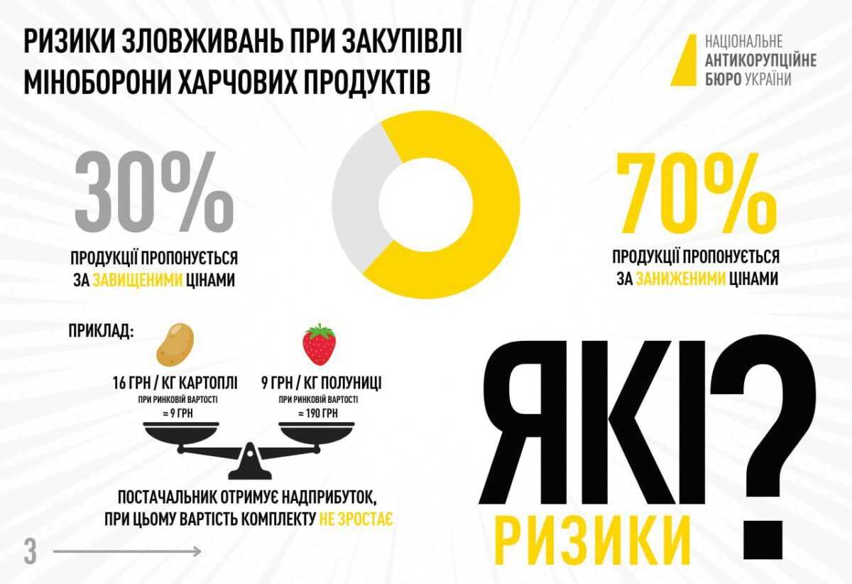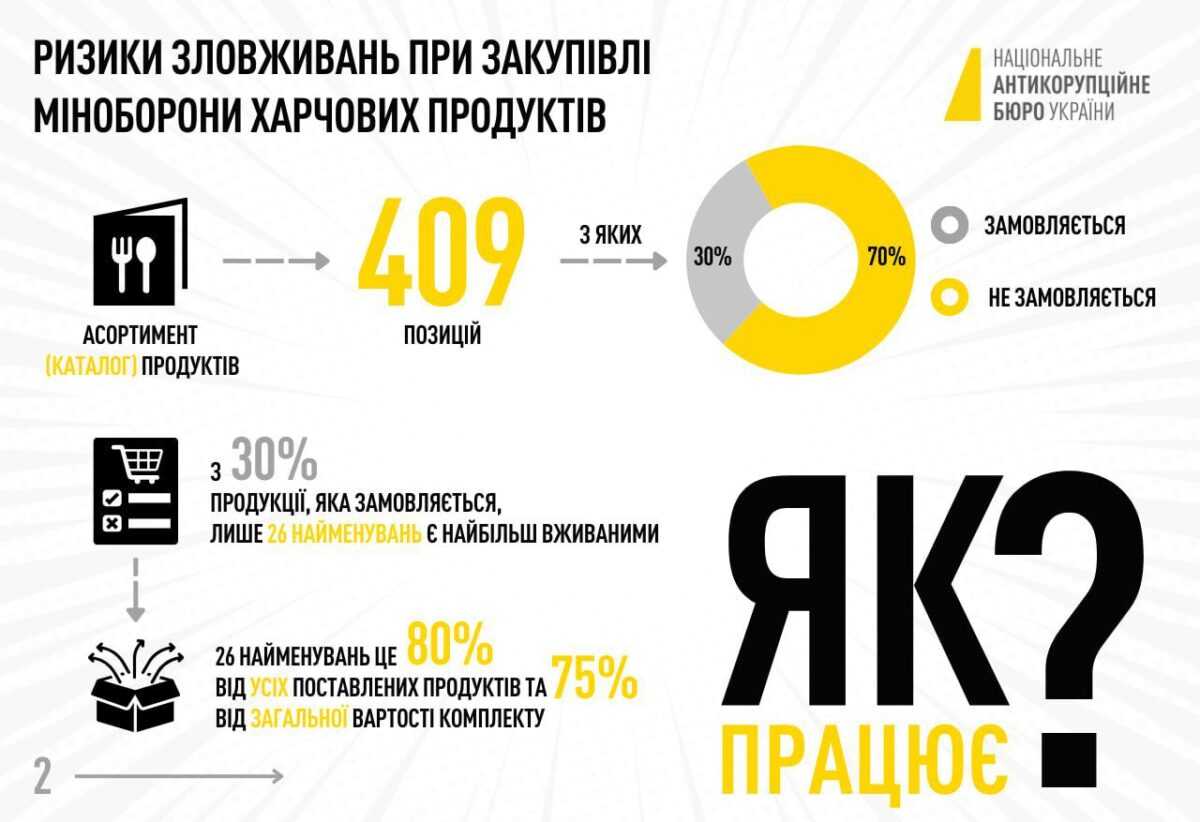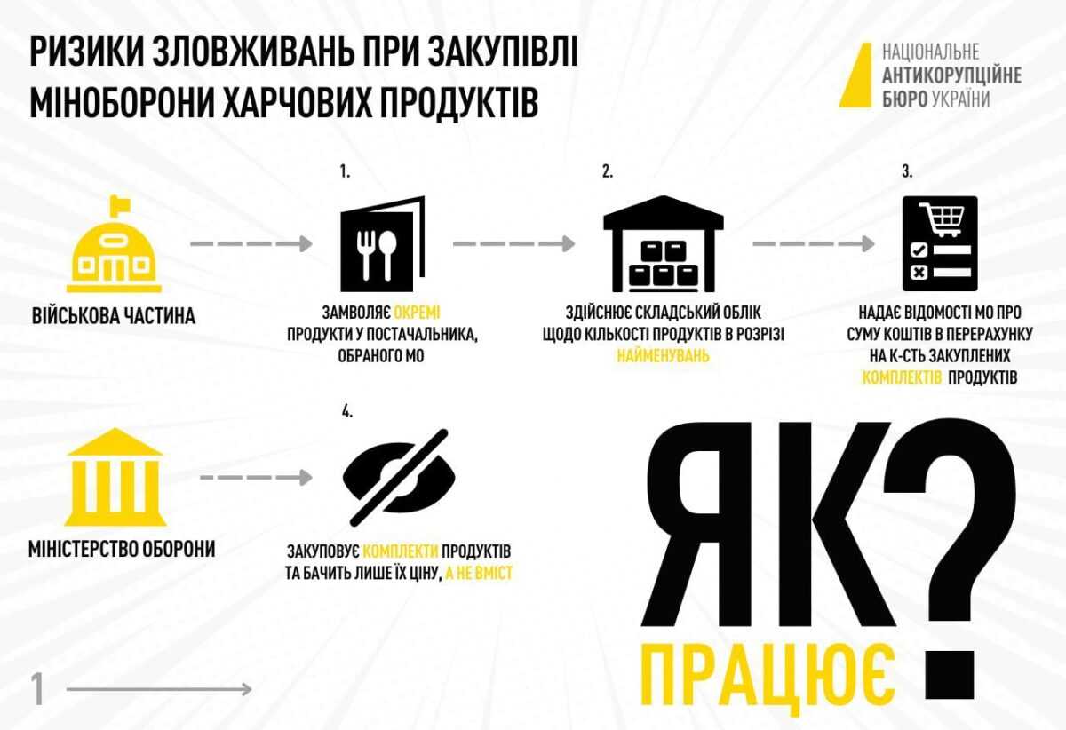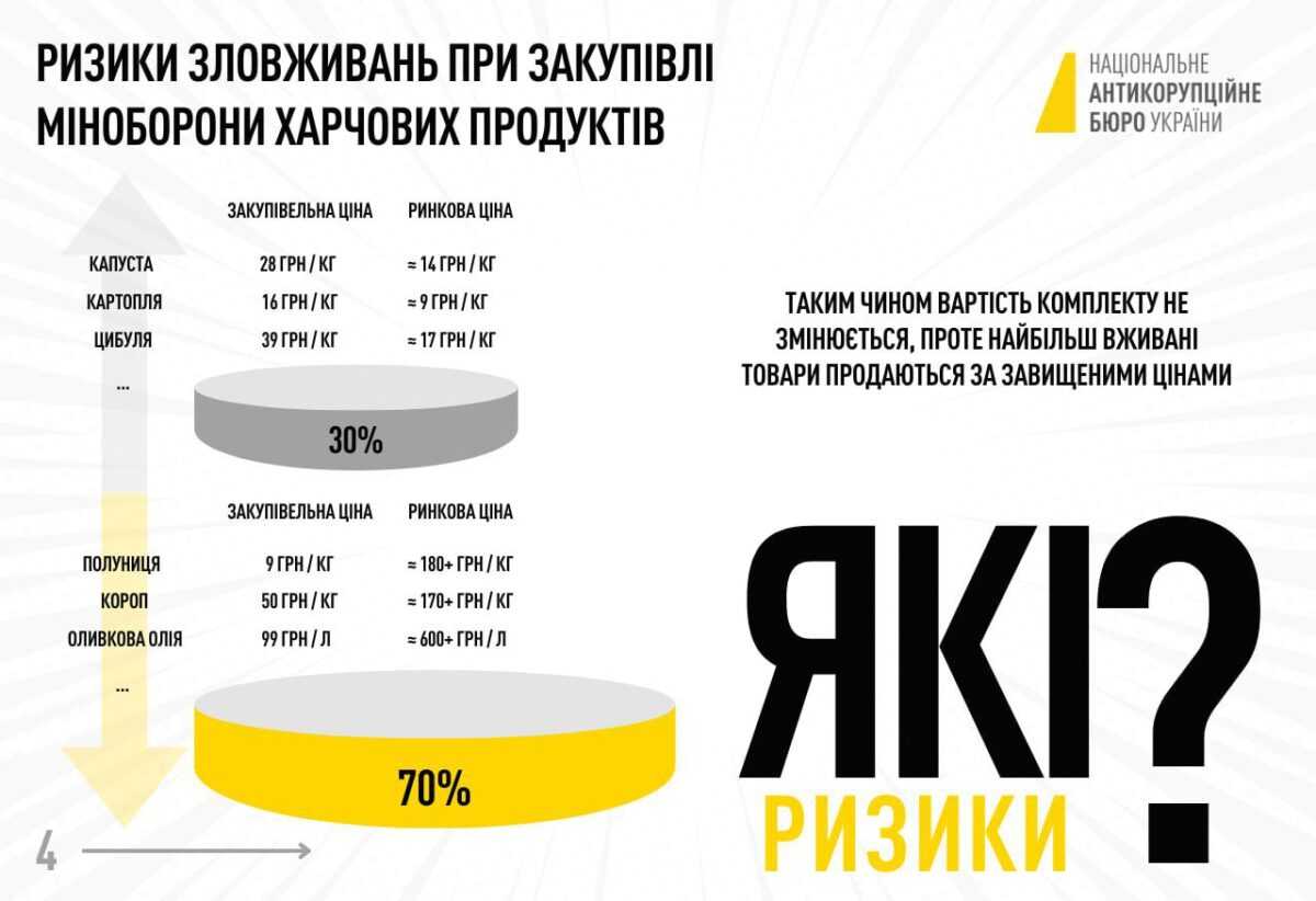 Закупівлі продуктів Міноборони за завищеними цінами: інфографіка від НАБУ