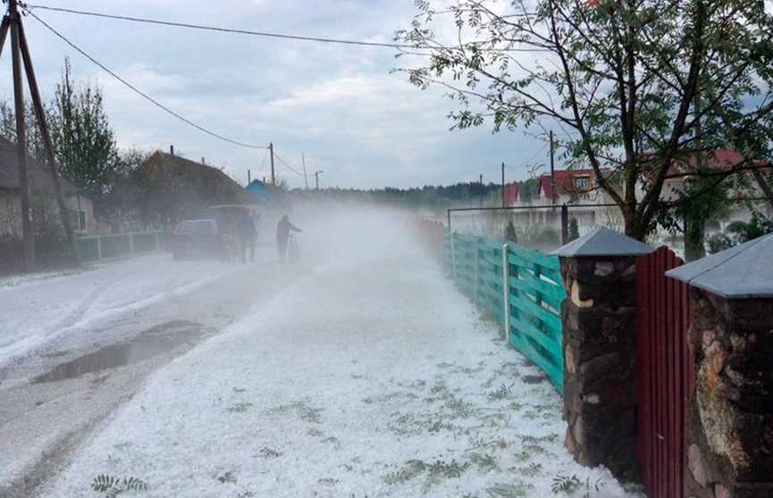 За словами і фото очевидців, граду випало стільки, що на траві утворилися крижані замети. Град мав розміри перепелиного яйця.
